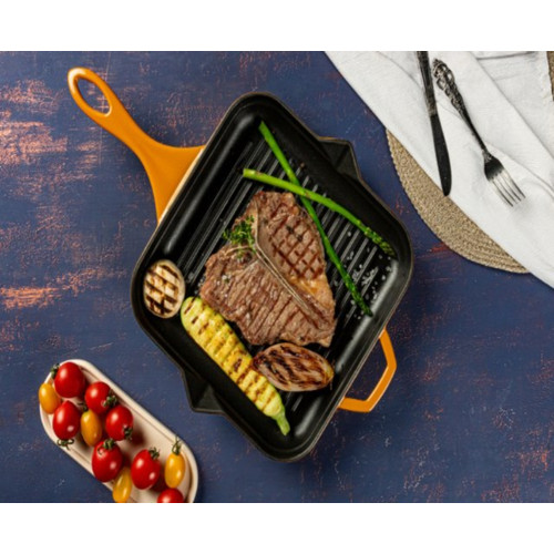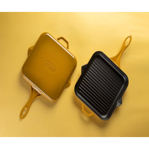 Emajlová liatinová panvica na grilovanie Hossé, žltá, 28x28cm Emajlová liatinová panvica na grilovanie Hossé, žltá, 28x28cm Emajlová liatinová panvica na grilovanie Hossé, žltá, 28x28cm